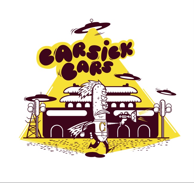 Everyone’s favorite alien mascot from the cover of the debut album by Carsick Cars makes its way to this collectible t-shirt. T-shirt is white with gold and brown print.